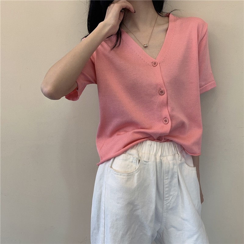 5分鐘前氣質v領薄款打底針織衫,2020夏季新款女裝短款開衫上衣 - 【買一送一】任選2件,僅需NT$998